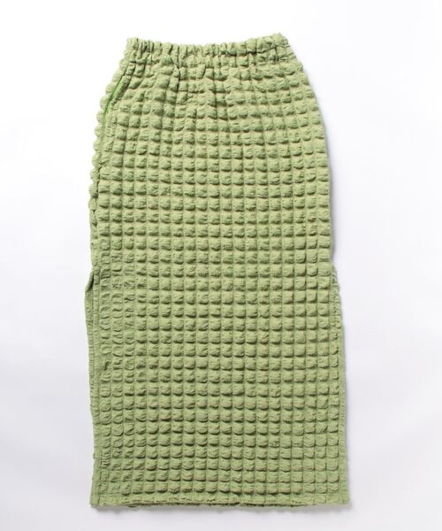 【CALMiA】おしゃれなトレンド"pocopoco"シリーズ!こちらは落ち着いたタイトスカート♪見た目にインパクトのある凸凹のシャーリング生地。伸縮性が高くストレスの少ない着心地です。いつものコーデに旬なアクセントをプラス+両サイドにスリットが入っているので、動きやすいです。レギンスやデニムなどをレイヤードしてもかわいくコーデがキマります。◆両サイドにポケット付き■カラーについてブラック・ライトグリーンの2色展開です。※ブルーとパープルのお取り扱いはございません。■生地について表面の凸凹の出方に個体差がございます。予めご了承ください。■pocopocoシリーズ/おとな2wayブラウス:0040331002ロングパンツ:0040131002