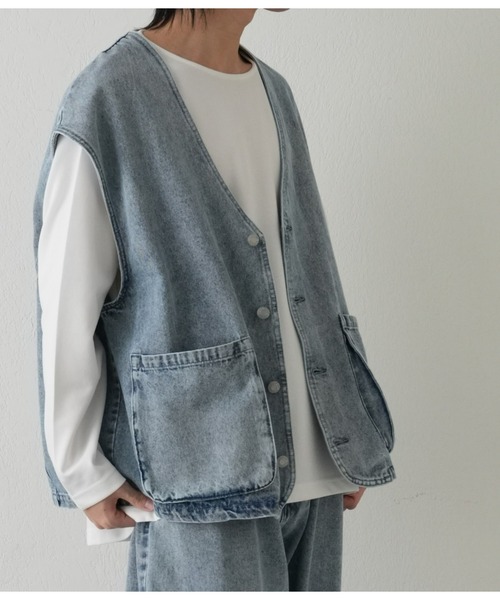 【夏場でも使いやすいデニムベスト】 Tシャツなどシンプルなアイテムの上から羽織るだけで、コーデにこなれ感を演出してくれます。 ゆとりのあるサイズ感でインナーを選ばず、今年らしいスタイリングが楽しめます。 【商品ポイント】 ・シンプルなコーデになりがちな夏場などにもオススメ ・デニム生地でしっかりとした生地感 ・バギーデニムパンツとセットアップで着用可能 ・軽くサッと羽織れるのも嬉しいポイント ・マチ付きポケット 【SET UPアイテム】 ・CMA2031303A0002 デニムワークベスト ・CMA2031303A0001 バギーデニムパンツ ---------------------------------------------------- ■商品特徴 洗濯方法:洗濯機洗い可(弱) 裏地:なし 透け感:なし 伸縮性:なし 光沢感:なし 生地の厚さ:普通 ---------------------------------------------------- ■素材 綿85%, レーヨン10%, ポリエステル5%(スカイブルー) 綿76%, レーヨン17%, ポリエステル7%(グレー) ---------------------------------------------------- ※着用、お取り扱いの際は、商品についている品質表示とアテンションタグを必ずご確認下さい。 ※商品タグに記載されている商品名がWEBでの表記名と異なる場合があります。 ※実際の商品と仕様、加工、サイズが若干異なる場合がございます。 ※照明の関係により、実際よりもやや明るく見える場合がございます。 またパソコンなどの環境により、若干製品と画像のカラーが異なる場合もございます。予めご了承くださいませ。 【お気に入り登録】してお得な情報をCHECK!! ・「商品のお気に入り登録」で再入荷通知や、ラストの通知、セール通知も受け取ることができます。 ・「ブランドのお気に入り登録」で新商品や再入荷など、お得な情報を受け取ることができます。