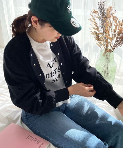 ■素材特性■ 表綿は凹凸感があり、裏面はフラットな見え方のWフェイス素材を使用しています。 ■デザイン■ クロップド丈のカットカーディガンになります。 裾を小さめにし、切替を太くすることでメリハリのシルエットにしました。 ボリュームのある袖で1枚で着映えするアイテムです。 ■スタイリング例■ ボトムを選ばず着用できるアイテム。 コンパクトなデザインなのでボリュームスカートなどとも相性よく着ていただけます。 前を開けて適度な肌見せをしたスタイリングも女性らしくオススメです。