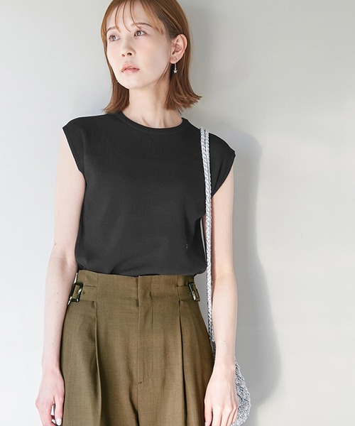 ネックが詰まっていても軽やかに見えるシアーな首元に。これさえあれば!なROPE' PICNICのロングセラーアイテム【Beauty knit】シリーズ。自然にスタイルカバーができるシルエットは、着て納得の完成度!:【素材感】・肩部分だけ編地を変えることでほんのり透ける仕様にしたニットプルオーバー。【デザイン・シルエット】・ノースリーブよりも安心感があり、フレンチスリーブよりもモダンに決まるゼロスリーブのクルーネックニット。・デコルテ部分はシアーな切り替えデザイン。・同型で素材違いのゼロスリーブニット(品番:GDM13520)も展開。【カラー】・カラーによって柄が異なります。ブラック(01)オフホワイト(15)ブルー系(45)イエロー系(81):無地キナリ系(17):ボーダー(オフホワイト×ブラック)【スタイリングポイント】・キャミソールワンピースのインナーにぴったり。・ハーフパンツなどを合わせると上品さとスポーティーさを併せ持った印象に。・肩部分は少し透けるのでカップ付きのキャミソールを合わせるのがおすすめ。-----------------------------裏地:なし透け感:なし(デコルテ部分はあり)、オフホワイト(15)キナリ系(17)はややあり伸縮性:あり生地感・厚さ:薄手季節:夏-----------------------------※撮影時の光、お使いのモニター環境によって色の見え方が違う場合がございます。※モデル身長:165cm 着用サイズ:38