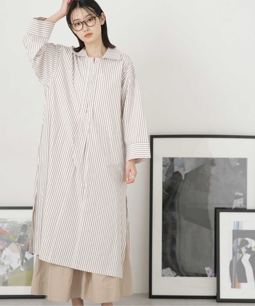 NANO universe(ナノ・ユニバース) LB.04 『爽やかなカラーリングが春らしいストライプ柄』 爽やかなカラーリングが魅力のストライプワンピース。深めのサイドスリットが抜け感を演出し、ボトムレイヤードもすっきり様になるデザイン。程よい丈感で、ショートパンツを合わせたヘルシーな肌見せスタイルもおすすめです。 ―DETAIL― ・春らしいストライプ柄のシャツワンピース ・抜け感のある深めのサイドスリット ・レイヤードもしやすいリラクシーなゆったりシルエット ・ショートパンツ合わせもオススメ◎ ―FABRIC― ・ハリ感のある素材 ・手洗いに対応したウォッシャブル素材 ■取扱方法 もみ洗いは、避けて下さい。単独洗いをして下さい。裏返してネットに入れて下さい。配色品、又は他の色物との漬け置き洗い・濡れたままの放置はお避け下さい。蛍光増白剤が入っていない洗剤を使用して下さい。こちらの商品は水や雨に濡れたり、汗による湿気、乾燥状態での摩擦により、薄い色の衣服などに色移りする可能性がございます。予めご了承いただき、ご使用の際にはご注意くださいますようお願い致します。 ▼商品のお気に入り登録 お気に入りアイテムの再入荷や残り1点の通知を受け取ることができます。 ▼ブランドのお気に入り登録 新作アイテムの入荷や人気アイテムの再入荷、タイムセールやクーポンなど、 ※サンプルにて撮影、採寸を行う為、実際にお届けする商品と仕様やサイズが異なる場合がございます。予約時は生産の都合上、お届け予定時期が前後する場合もございますので、予めご了承下さい。
