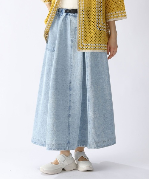 定番人気のベルト付きスカートが今期も登場!■素材特性オールシーズン使えて便利なコットンで作られています。■デザインウエストは楽ちんなゴムになっており、ベルトで調節可能です。今季はアウトポケットのデザインや、カラーステッチのディティールで少しワークっぽくアレンジしています。■おすすめスタイリングカジュアルなルックスで一枚でサマになるので、シンプルにTシャツを合わせるのもおすすめです◎
