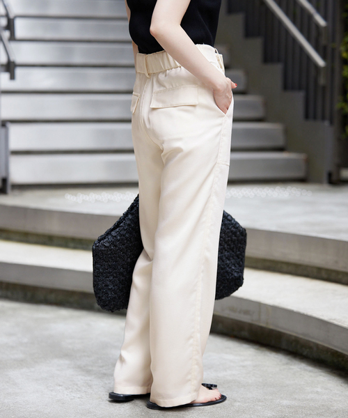 【2023SS】IENA※こちらの商品は、品番:23030900941010の追加品番になります。※ブラック(001)は、品番:23030900941010で販売中です。※若干の仕様変更がある場合がございます。リラックス感と上品さの両方が叶う万能パンツ。落ち感のあるポリエステルサテン素材で上品な光沢と柔らかさが特徴。ウエスト後ろベルトに平ゴムを使用しているので、前からはちゃんとしつつもイージーに着用していただけるパンツです。この光沢と落ち感がある素材のベイカーパンツは、他にあまり無く大人っぽく上品に着て頂けます。腰位置でラフに着用して頂くのがオススメです。*********************透け感:無し裏地:ナチュラル(016)のみあり伸縮性:ややあり光沢感:あり生地の厚さ:薄手*********************※取り扱いについては、商品についている品質表示でご確認ください。※こちらの商品は、IENAでの取り扱いになります。直接店舗へお問い合わせの際はIENA店舗へお願い致します。※商品の色味は、撮影場所や光のあたり具合などにより色味が違って見える場合が御座います 。また、お客様のお使いのPCのモニター環境などにより色味が違って見える場合が御座います。予めご了承の上ご注文下さい。本体:手洗い可能