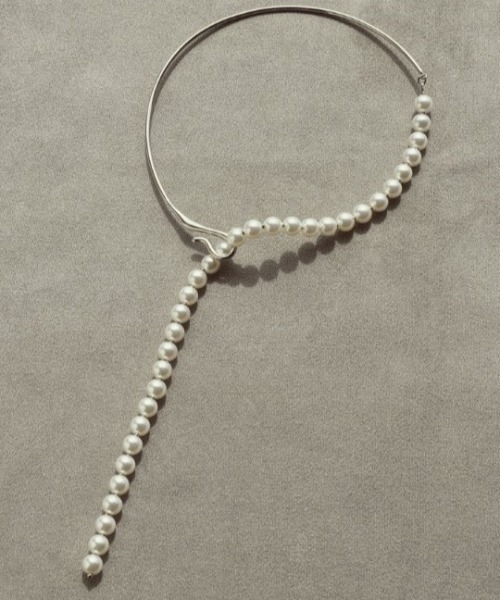 【GOLDYオリジナル】 GOLDYオリジナルデザインのネックカフです。 トレンド感のあるアイテムのネックカフは、チョーカーやネックレスとはまた違った、新しい着け感が目を惹くアイテム。 そのネックカフとパールをつなげた、アシンメトリーなコンビネーションデザインは、トレンド感と高級感を兼ね備えています。 こなれ感のあるY字シルエットは、身に着けるだけで洗練されたスタイルに。 お好きな場所に引っ掛けて長さの調節が可能なので、スタイルや気分に合わせてアレンジ出来ます。 カラーは、艶のあるシルバーとゴールドをご用意いたしました。 清楚なイメージで首元に華やかさを添えてくれるパールチョーカーは結婚式や卒業式・入学式などのオケージョンシーンやパーティーシーンはもちろん、 カジュアルな普段使いまで、ファッションを選ばずお使いいただけます。 素材:真鍮・鉄・樹脂パール・テグス・樹脂 『 GOLDY / ゴールディ 』 自分のファッションスタイルを遊び心いっぱいに 楽しむ女性たちへのファッションアクセサリーブランド アクセサリーのワクワクや楽しさをデザインしています。 ≪お気に入り登録≫でお得な情報盛りだくさん ・“商品のお気に入り登録”で再入荷通知やラストの通知、セール通知も受け取ることができます! ・“ブランドのお気に入り登録”で新商品や再入荷など、お得な情報を受け取ることができます◎ ※ご注文いただいた予約商品のお届け時期の確認は、注文履歴ページより行えます。