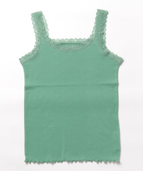 縁取りのレース使いが愛らしい表情をプラスするタンクトップ。 前後どちらでも着用可能な2WAYデザインで、着こなしの幅も広がります。裾のメローフリルもさりげないポイント。 シンプルに着るのはもちろん、シアーアイテムと合わせたインナー使いなど、様々なスタイリングのアレンジが楽しめる1着です。 ※商品画像は、撮影環境やお客様のご利用のPC・スマートフォンのモニター環境などにより実物と色味に差異がある場合がございます。