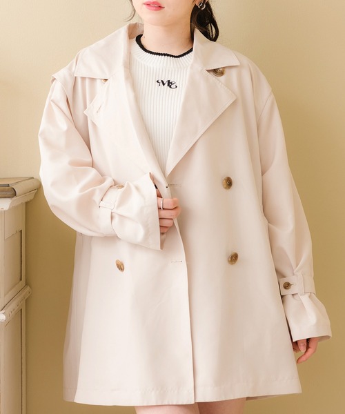 <春の大定番のトレンチコートにひと技効かせた注目アウター!> ▼デザイン ミドル丈でインナーを選ばずコーディネートできます! さっと羽織るだけでおしゃれ度がグンと上がる定番アイテム。 なんと袖はとりはずし可能でトレンチベストとしても使えます! コーディネートの幅が広がるアイテム! ▼コーディネート キレイめスタイルにもカジュアルスタイルにも◎ ロングブーツをあわせたり、ソックス+シューズあわせがおすすめ! またトレンドのフロッキーインナーをあわせるのも◎ ------------------------------ 生地感:厚手 伸縮性:なし 透け感:なし 裏地:ある ------------------------------ ▼ブランド紹介 ems excite (エムズエキサイト) “more fun more cute” 今をもっと楽しく もっと可愛くいたい女の子に向けた girly cuteなブランド #春コーデ#新作#人気アイテム #トレンチ#トレンチコート#春アウター #アウター#ベスト#トレンチベスト #フレンチガーリー#ガーリーコーデ ▼注意事項 ※撮影環境やモニター環境によって実際の商品とお色味が多少異なってみえる場合がございます。 品番:EP380021B005 / 品名:ピーチ2wayトレンチコート
