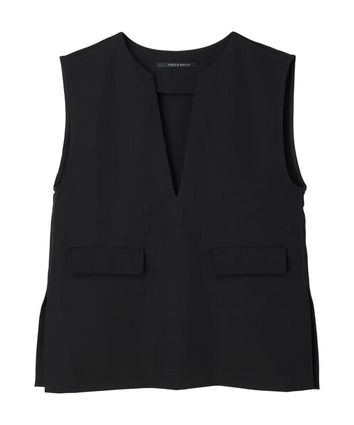 シャープな抜け感を演出するVネックデザインのプルオーバーベスト。 フロントのフラップもクラシカルで上品な印象をプラス。裾のサイドにはスリットを入れることで、重ね着でも映えるポイントに。 透け感[無し] 裏地[無し] 伸縮性[やや有り] 光沢感[無し] 生地の厚さ[普通] 付属品[無し] ポケット[有り]前2つ