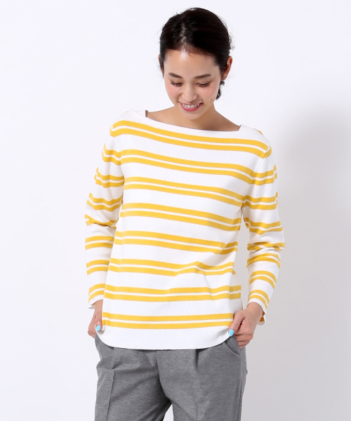 今シーズンのトレンドカラーのホワイトをベースにボーダー柄をオン。程よいカラーの配色がさらにさわやかな印象に。パンツを合わせたメンズライクなコーディネートやミモレ丈スカートを合わせたトレンドコーデなど、着こなしの幅も広がる1枚です。