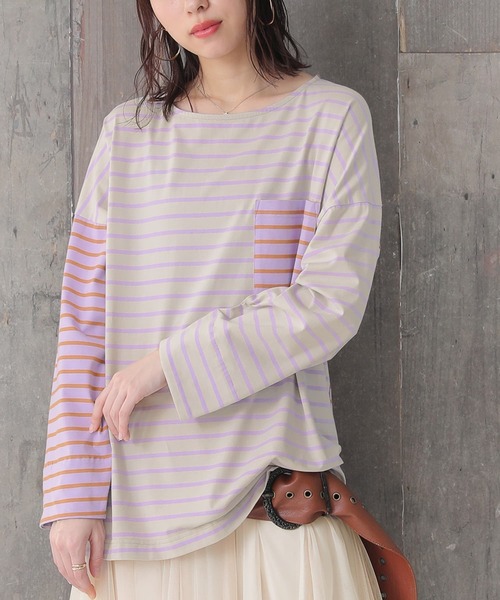 『自慢したい、主役級ボーダー。』2色のボーダー柄生地を切り替えたゆるっとロンT。袖の内側にも配色が効いているから、折り返してアレンジも楽しめる♪両サイドに入ったスリットが抜け感を演出します。素肌に触れても心地良いコットン混のカットソー生地を使用。さらりと着やすい素材感で、ロングシーズン着回しをお楽しみいただけます。今、好きな物、興味あることを自由な発想で表現できる≪ n'OrLABEL ≫。「実用性と機能性、そして遊び感覚」、多面性を楽しめるピュアでモードなデザインライン。コーデの主役になる≪n'OrLABEL≫ボーダーアシメ配色カットソーです。