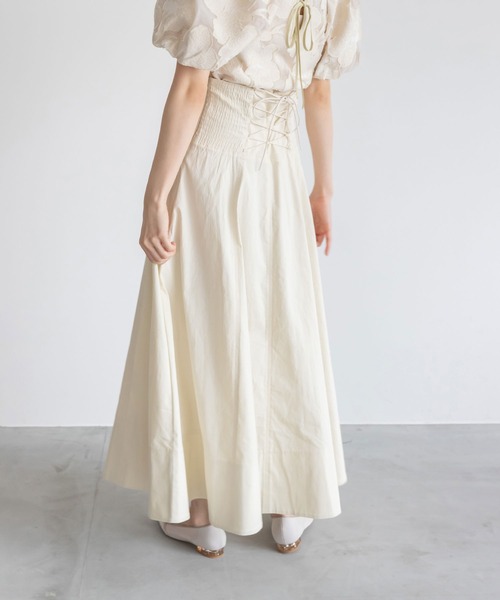 女性らしさを引き立てるハイウエストスカートPOINT・ウエストから広がるフレアシルエット・スタイルアップが期待できるハイウエスト・選べる丈感シリーズなので、ロング丈で大人っぽく着ても◎・ハリ感が程よくあり、ストレッチの効いたデニム見えする素材を使用・ウエストの後ろ部分はゴム仕様+レースアップデザインでサイズの微調節可能・縦の切り替え線のステッチデザインもポイント・同素材のブラウス(ダブルパフデザインブラウス BT31150 )(ボリュームスリーブブラウス BT31149 )とセットアップで着用可能COORDINATE同素材のブラウスと合わせてワンピース風にも着用可能です。スカート単体では、細身のニットやシンプルなシャツと合わせて大人可愛く仕上げたスタイリングもおすすめです。- - - - - - - - - - - - - - -洗濯方法:家庭洗濯可透け感:なし裏地:CREAMのみあり伸縮性:ややあり生地の厚さ:普通- - - - - - - - - - - - - - -◆ 丈感が選べるサイズ展開 ◆こちらの商品はお客さまの身長に合わせて着丈がお選びいただけます。身長が高めの方や、長めの丈で着用いただきたい方はFT(フリートール)サイズがオススメです。注意事項お使いのモニタにより、商品の色味が多少異なる場合がございます。ご了承ください。