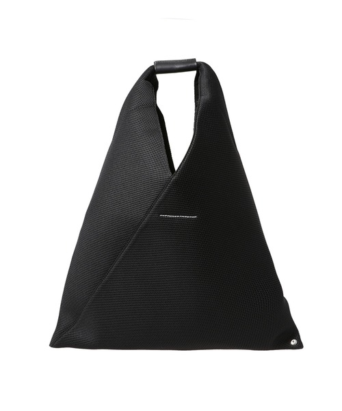 ―Detail― ・2009年の秋冬コレクションのアイテムとして発表されたJapaneseバッグ。 ・こちらは、コンパクトに小物を持ち運べるスモールサイズです。 ・発表以来、MM6を代表するアイコンとして人気のアイテム。 ・日本の伝統的な折り紙にインスパイアされた、三角形のフォルムが特徴。 ・底のスナップをあわせることで、デザインの変形も可能です。 ―Fabric―・表地には弾力性のあるメッシュ生地を使用。・裏地にはリピートロゴ入りのポリエステルを使用しています。 透け感:なし 裏地:なし 伸縮性:あり 光沢感:なし 生地の厚さ:薄手 ポケット:なし <サイズ> 縦:54cm 横:50cm