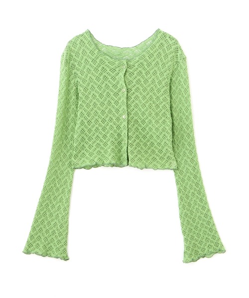 ツイードライクでバイアスチェック柄な幾何柄のレースカーディガン。 体に程よくフィットするタイトなサイジングで、長めの袖と袖口に向かって広がるフレアスリーブがきれいなシルエット。 襟ぐり、袖口、裾は同色系メロー始末ですっきり見えします。 第一ボタンを開けてキーネックにして抜け感のある着こなしがおすすめ。 タイトめなシルエットなので、ボリュームのあるパンツ合わせで甘辛コーデがイチオシです。 ●商品特性● 〇透け感:あり 〇生地の厚さ:薄手 〇裏地:なし 〇伸縮性:あり 〇光沢:なし 〇シルエット:スモール ------------------------------------------------------ 商品のお気に入り登録➡ お気に入りアイテムの値下げ・再入荷・在庫1点などの通知を受け取ることができます。 ブランドのお気に入り登録➡ 新商品や再入荷、セール、クーポン配布などお得な情報を受け取ることができます。 ※商品の色味は、撮影場所や光のあたり具合などにより色味が違って見える場合が御座います。 ------------------------------------------------------
