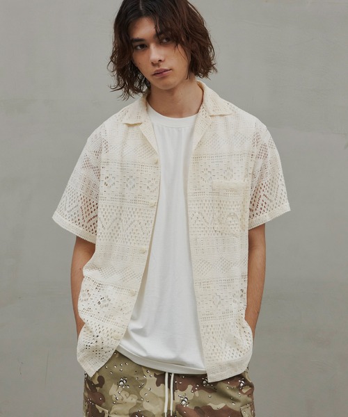 2023 Spring&Summer トレンドの透かし編み編み素材を使用した鮮度ある1着 ルーズシルエットオープンカラーシャツ ■素材透かし編みのリラックス感と凹凸感による表情の豊かさが特長です。 清涼感もあり重ね着のコーデに映えるアイテムです。 ■シルエット 広めの身幅とゆとりのある袖回りのサイズ感によってリラックス感ある着こなしが可能。 インナーとのレイヤードによる透け感を活かしたスタイルを楽しめる、スタイリングの幅を広げられる1着となっています。 ■コーディネート 素材の風合いと透け感を活かしたシンプルな着こなしがおすすめ。 合わせるインナーによって違った雰囲気が楽しめる1着です。 ボトムもアメカジ定番のデニムやカーゴだけでなく、トレンドのフレアパンツやトラックパンツとの相性も良い万能な1着となっています。 【Revo.(レヴォ)】 音楽、古着、ワーク、ミリタリー etc ... 様々なカルチャーやライフスタイルからインスパイアされたアイデアを、素材の風合いを活かしたベーシックアイテムへとアウトプット。シンプルな中にも「匂い」を感じるナチュラルスタイルを提案します。