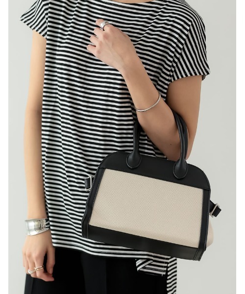 収納力もばっちりのミニボストンフェイクレザーとキャンバス生地の切り替えがポイントのミニボストンバッグ。カジュアルからモードまで、幅広いコーディネートにマッチする旬のデザインが魅力。取り外し可能な、肩紐付きで気分やコーディネートに合わせてアレンジも可能。しっかりとマチがあり、荷物の整理もしやすくたっぷりとした容量も◎デイリー使いにぴったりのバッグです。■モデル着用写真は撮影環境により、多少実際のカラーと異なる場合がございます。お気に入りショップにご登録いただきますと、ショップニュースを、いち早くお届けいたします。