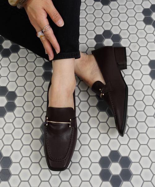 【ビットローファー】 金具モチーフがクラシカルな大人マニッシュデザイン! 〈detail/fabric〉 レディとハンサムを半分こにしたデザインのローファーは大人の嗜みとして1足は持っておきたいアイテム。 スクエアトゥですっきりとした美しいフォルムは、履くだけで洗練された印象♪ 華奢な金具モチーフ使いでシンプルな中にも華やかなムードが漂います。 安定感のあるローヒールで歩きやすいのもうれしいポイント! 〈styling〉 デニムからワイドパンツ、スカートスタイルまで幅広くマッチします。 ブラックは通勤・お仕事履きにもオススメです。 素足にはもちろん、ソックスやタイツなどに合わせるなど、シーズンレスに使えるローファーです。 ________________________________________ ************ STAFF 着用サイズメモ ************ 【着用サイズS スタッフA】 *普段22.5cm、Sサイズ。靴によっては23cmの場合もあり *足幅 普通 *甲高 普通 ☆☆靴下で着用。かかと部分は若干余っていて、歩いていると時々浮いてきます。脱げることはないです。甲周りはジャストサイズです。☆☆ 【着用サイズM スタッフB】 *普段は23.5cm靴によっては23.0cmの場合もあり *足幅 普通 *甲高 やや甲高 ☆☆MサイズとSサイズを着用 Mサイズ→靴下で着用。大きいと感じました。足長は人差し指1本分あまりました。横幅、甲のゆとりは程よくちょうどいいです。Sサイズ→かかとはぴったり。裸足だと少し大きいと感じるほどです。横幅、甲のゆとりはMサイズとさほどかわりはありません。気持ちタイト、くらいの差です。私のサイズですとSサイズにすべきだなと思いました。☆☆ 【着用サイズL スタッフC】 *普段サイズ24.5cm ☆☆●●●☆☆ ________________________________________ △▼△▼△▼△▼△▼△▼△▼△▼△▼△▼△▼△ FABBY FABBY./ (ファビーファビー) FABBY FABBY.は自分らしく生きるアクティブな女性に向けて、コーディネートのポイントになるようなトレンドシューズを展開しています。 自分に合う、自分らしい1足をお探しいただけます。 東京発のレディースシューズのブランドです。 △▼△▼△▼△▼△▼△▼△▼△▼△▼△▼△▼△
