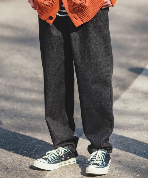 無駄な装飾のないベーシックなスタイルのワイドテーパードデニムをご紹介。●しっかりと手持ち感のあるコットンを混紡したデニム生地を採用●ワイドでありながら裾に向かってやや絞ったテーパードシルエット●ブルー、インディゴに加えケミカル、ストーンウォッシュをセレクト●5ポケット、ジッパーフライ仕様ストリート、スケーターはもちろん古着MIXや韓国ファッションにもオススメの一本。トレンドを感じさせるワイドなシルエットでスウェットトレーナーやボーダーロンTと合わせての90'sストリート感のあるコーデがオススメです。男性にはもちろん、メンズライクな女性にもはいていただきたい仕上がりになりました。