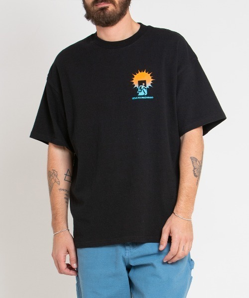 "レコーズ、音楽というフィルターを通し新しい世界観を打ち出す""DEUS RECORDS""。オリジナリティ溢れる大胆なグラフィックアートワーク、オーバーサイズなサイジングでフレッシュなストリートウェアーをリリース。オーガニックコットンを使用したヘビーウェイト生地に、リズムが生み出す躍動感あふれるオリジナルグラフィックを施したTシャツ。オーバーサイズフィットのリラックスしたシルエットです。"