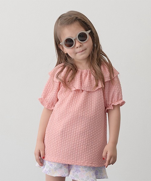 ぽこぽこした素材と首元のフリル衿がかわいらしいトップスです。サラっと着心地のいい薄手の楊柳素材で、春夏におすすめの爽やかさを演出。首元はゴム素材で着脱しやすいのが嬉しいポイント。袖口はキャンディスリーブ型で、ガーリー感をさらにプラスしました。 ※掲載画像の商品の色味は、光の照射や角度により実物と色味が異なる場合がございます。また表示のサイズ感と実物は若干異なる場合もございますので、予めご了承ください。【透け感】透ける【生地の厚さ】普通【伸縮性】あり【裏地】なし【ポケット】なし