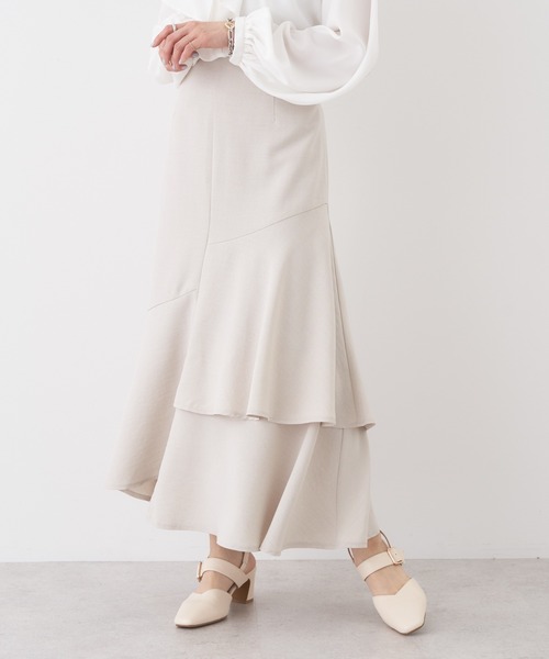 アシンメトリーなデザインがこなれ感を演出するスカート。 裾に向かってボリューム感があり、レディライクな着こなしを実現します。 バックのウエストはゴム仕様なので、トップスをインしたスタイリングもおすすめ◎ 休日のお出かけやデートシーンに活躍するアイテムです。 透け感[無し] 裏地[すべて有り] 伸縮性[無し] 光沢感[やや有り] 生地の厚さ[普通] 付属品[無し] ポケット[無し] ●製品寸法: S:ウエスト[後ゴム仕様]64cm ヒップ88cm 総丈84.5cm 備考: