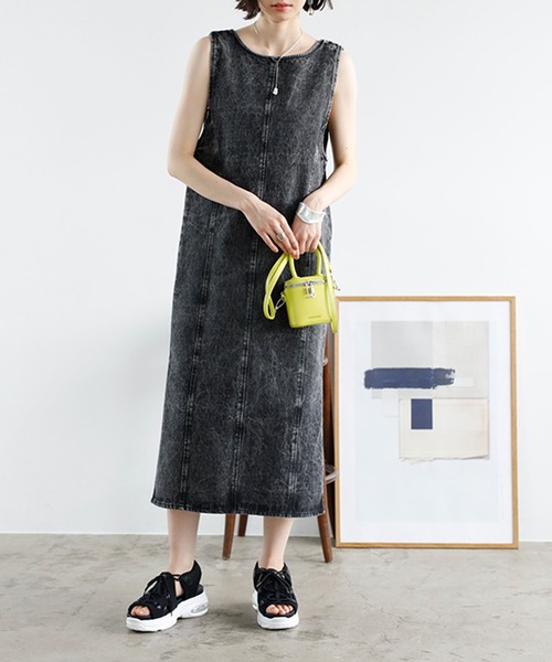 大人のカジュアルスタイルに可愛さをプラス 気分によって着こなしを変えられるシーズンレスなデニムジャンパースカート 〇デコルテをすっきり見せる深Vネックと女っぽく着こなせるクルーネックの前後2way仕様 〇配色ステッチとファスナーで縦ラインを強調、スタイルアップ効果も 〇前を開けてロングジレとしても着用OK 〇サイドスリット入りなので足元に軽さもプラス ■素材 程よい厚みで、オールシーズン着回せる綿100%デニム素材。 …………………… 透け感:なし 厚さ:厚め 伸縮性:なし 裏地:なし …………………… ■コーディネート インナーにシンプルなTシャツを合わせるのはもちろん、 シアー感のあるロングスリーブTシャツや、シャツやブラウス合わせもおすすめ。 ●裏地無 ●ポケット無 ●裾スリット(両脇約34cm) ●ファスナー前 ●前後2WAY ※製品洗い加工の特徴上、色・サイズに差異が生じる場合があります。 ※摩擦により色移りすることがあります。 洗濯:洗濯機使用可 --------------------------------------------------------------------- ※サイズ寸法は実際の寸法と多少の誤差がある場合が ございます。 ※ご覧いただいているPC/WEB環境や撮影環境により、 多少色味が異なって見える場合がございます。 【お買い物をよりお楽しみいただく為に】 ▼商品のお気に入り登録をおすすめします♪ 『♡をクリック!』 完売カラーの再入荷やラスト1点の追加、 セールの際の通知を受ける事ができます。 ブランドのお気に入り登録もご一緒にお願い致します。 ---------------------------------------------------------------------