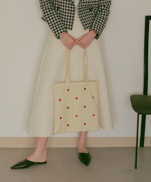 【ハートとデイジーの刺繍トートバッグ】・総柄風の刺繍がポイント・ベーシックデザインのトートバッグ・メインのバッグとしてもサブバッグとしてもおすすめフロントには総柄風にハートとデイジーが刺繍されたバッグ。くたっと持てる柔らかい薄手のキャンバストートでメインバッグとしてもサブバッグとしても使いやすい。EFOLEのミニバッグと合わせて持つのがおすすめです。※商品画像はサンプルのため、色味やサイズ、仕様等に変更が生じる場合がございますので、予めご了承ください。【EFOLE】2020SUMMERからスタートしたブランド。EFFORTLESSとSIMPLEをキーワードとし、ほどよく肩の力が抜けたファッションに合うミニマルでシンプルなバッグをはじめとするアイテムを提案するブランドです。PC対応:14インチA4収納:○ハンドルの長さ:66㎝ハンドルの高さ:31㎝ショルダーベルトの長さ:なし肩掛け:〇バッグの口開けタイプ:オープンポケット個数外側:なしポケット個数内側:オープンポケット1