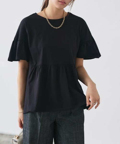 一枚でフェミニンさとこなれ感を演出する“ギャザーフリルスリーブTシャツ”柔らかく滑らかな肌触りの綿100%素材なので、着るだけでぐっと大人な雰囲気に。程良くしっかりとした質感で薄すぎず厚すぎない生地は、デイリー使いに最適です。透け感(淡色):あり透け感(濃色):なし伸縮性:あり裏地:なしポケット:なしファスナー:なし生地の特性上少し毛羽たちが生じます。オフホワイトに透け感が生じます。袖や、ウエスト周りにギャザーをたっぷりと施し、ふんわりとしたフェミニンな印象に◎気になる二の腕やウエスト周りをカバーしてくれる丈感も嬉しいポイント。ウエストの切り替えを少し上にしているので、スタイルアップ効果も◎前後差のある着丈がサイドから見てもこなれ感のある印象に仕上げてくれる一枚です。※商品画像は着用イメージです。光や角度により、実物と色味が異なる場合がございます。また表示のサイズ感も実物とは若干異なる場合もございますので、予めご了承ください。【ブランド】marvelous by Pierrot(マーベラスバイピエロ)【お買い物を楽しむための方法】**商品のお気に入り登録**カートボタン横の♡をクリック!気になるアイテムが完売しても再入荷のお知らせ通知や、在庫ラスト1点の通知、セールの通知が届きます。**ブランドのお気に入り登録**ブランドトップページの「♡お気に入りブランドに追加」をクリック!新商品や再入荷など、クーポン配布などのお得な情報を受け取ることができます。洗濯:洗濯可(ネット使用)