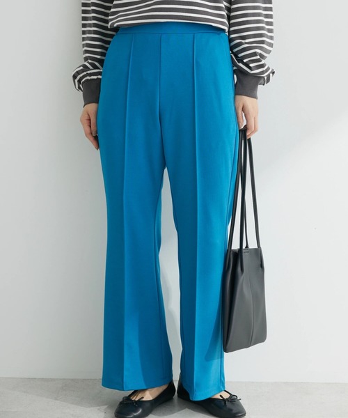 裾に向かってなだらかに広がるシルエットがトレンドライクなパンツ。 センターシームを施すことで、縦長効果を実現します。 バックのウエストゴム仕様が、ラクな着心地を演出◎ シャツやカットソーと合わせればきれいめなコーディネートが完成するアイテムです。 透け感[無し] 裏地[無し] 伸縮性[やや有り] 光沢感[無し] 生地の厚さ[普通] 付属品[無し] ポケット[有り]前2つ ●製品寸法: F:ウエスト(後ゴム仕様)66~cm ヒップ93cm 総丈93cm 股下67.5cm わたり周り31.5cm 裾幅26.5cm 備考: