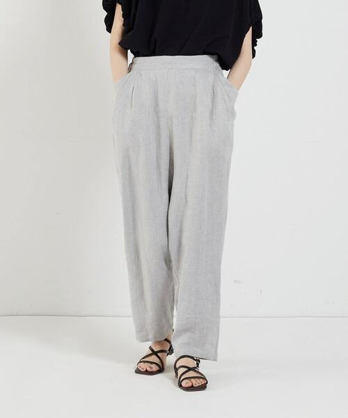 【素材】 ボトムスに適した40/リネンの糸で、シャリっとした清涼感のある風合いの生地をオリジナルで作りました。 ブルー系その他...ネイビーギンガム グレー系その他...グレーヘリンボン ブラック系その他...ブラックギンガム ネイビー...ネイビーシャンブレー 【アイテム】 以前、展開していたテーパードパンツを今の気分でアップデートしたリネンテーパードパンツ。 生地は定番ワイドサルエルパンツと同じ人気リネン素材。 脇のポケットにゆとりを取った特徴的なデザインはそのままに、股上を少し深くとり、ウエストをゴム+リボンの仕様へ変更してリラックス感をより追及したリニューアルボトムスでこのシーズンおすすめのボトムスです! ---------------------------------------------------------------------- ■洗濯:手洗い○ ■透け感:なし ■裏地:なし ■伸縮性:なし ■光沢感:なし ---------------------------------------------------------------------- 【ブランド情報】 congés payés/コンジェ ペイエ congés payés =有給休暇 リラックスできるコンフォータブルな服。天然素材をベースに、ライフスタイルに寄り添うエフォートレスアイテムを提案します。 ---------------------------------------------------------------------- 【お気に入り登録】がオススメです!! □商品のお気に入り登録□ 再入荷、残り1点、セールなどの通知を受け取ることができます。 →商品ページ ♡ をクリック ■ショップのお気に入り登録■ 新商品や再入荷、クーポン発行、ショップニュースなど、いち早くショップの情報を受け取ることができます。 →「♡お気に入りショップに追加」 をクリック ----------------------------------------------------------------------