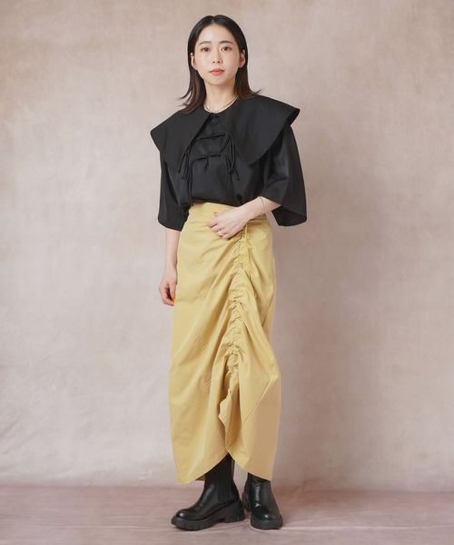 【ベネシャン素材のシャーリングスカートが登場!】 ▼おすすめポイント 1.上品な光沢感が魅力的な大人の万能Iラインスカート フロントのシャーリングが立体感をプラス。 絞り具合で雰囲気が変わるものもポイントです。 2.ツルっとした素材感で高見え◎ インナーのラインを拾わない生地感で、タイトシルエットでも履きやすいスカートです。 3.身長やスタイリングに合わせてシャーリング具合を調整でき、 幅広いコーディネートに合わせられます! ▼おすすめのStyling 1.シアーカットソーと合わせて韓国ストリートスタイル 2.甘めなフリルブラウスを、キャップやスニーカーで外したスタイル 3.ショート丈アウターと合わせたワントーンコーデ ※スタイリングは、詳細画像のコーディネートでご覧ください ▼担当からひと言 1.トレンドシャーリングディティールは1枚持っていたいアイテムです! 2.カラバリ豊富なところも嬉しいポイント♪ --------------------------------------------------- 透け感:無し(アイボリーのみ裏地あり) 厚さ:普通 伸縮性:無し 洗濯方法:ドライクリーニング可能 --------------------------------------------------- ※詳しいお手入れ方法は、商品タグをご確認ください。 ▼お悩みの方に ------------------------------ 〇アイテムのお気に入り登録 気になっているアイテムの色、サイズの♡をクリックして、ラスト1点を通知でお知らせします 欲しかったアイテムの♡をクリックすると再入荷の通知でお知らせします。 ------------------------------ 〇ショップのお気に入り登録 ショップページの♡をクリックすると、新商品、人気アイテムの再入荷など、お得な情報を受け取ることができます。 ------------------------------ ▼注意点 ※掲載画像(商品、モデル着用とも)につきまして、撮影環境やお客様の閲覧されますパソコンや携帯電話キャリアによって、実際の商品とは多少異なった色に見える場合があります。 また表示のサイズ感も実物とは若干異なる場合もございますので、予めご了承ください。 ※タグ・バーコードのついたシールには、サイトのご案内と異なるカラー名が記載されていることもございます。ご了承ください。
