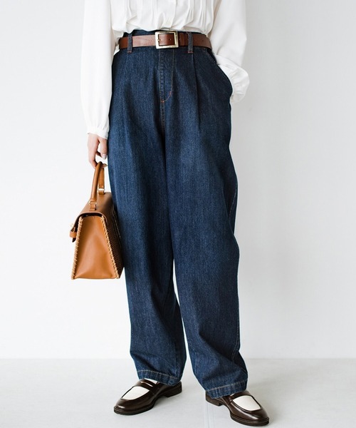 楽なだけじゃない、かっこよくセンターにタックの入った、きちんと見えするテーパードシルエットを採用したデニムパンツです。ヒップや太ももまわりにはゆとりがあり、すそに向かって徐々に狭く。はき心地は快適なのにスッキリかっこよく見えます。ウエストにはファスナーやボタンがなくスッキリ脱ぎはきも簡単。サイドから後ろにかけては太幅のゴムで楽ちんにキュッと引き締めます。カン止めの配色ステッチや後ろの大きめポケットなど、細かなこだわりをぎゅっと詰め込んだところにも注目です。ABOUT refined works動きやすさと着心地にこだわったノンエイジなお洋服。サスティナブルな素材にもこだわった、着心地の良いアイテムを展開するブランドです。※洗濯機洗い可※光や照明の当たり具合によって、実際の商品の色味と若干の違いが発生する場合があります。※<インディゴブルー>フロントの赤いカンどめステッチのカラーが実際はブラウンになります。#デニム========== haco! とは ===========ファッションアイテムを軸に、毎日の生活がちょっと楽しくなるようなお洋服をお届けしています。毎日が、そして明日が、昨日よりちょっとびっくりできる、そんなお洋服や雑貨、プロジェクトがたっぷりつまったツーハンサイトです。===========================