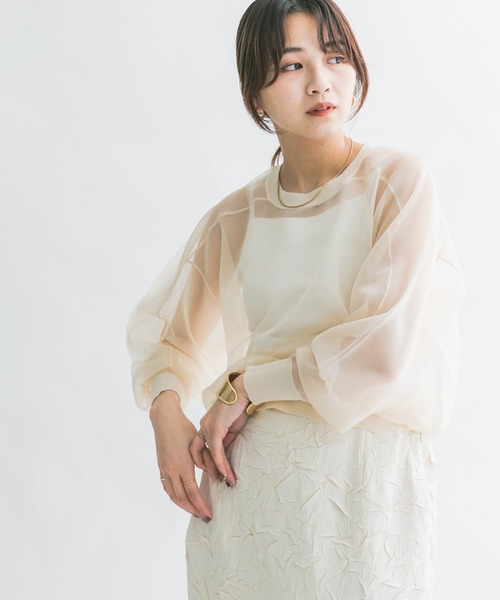 【繊細な透け感がポイントのプルオーバー】透明な糸を採用した繊細な透け感が魅力のニットプルオーバー。手元と腰回りのリブが程良いカジュアルさを与えます。大き過ぎないサイジングはどんなボトムともマッチしやすいです。POINT・女性らしい繊細なシアー感・バランス良い着用が叶うサイジング・大人っぽく落ち着きのあるカラーリングCOORDINATE程良いサイジングはワイドデニムやスラックス、Iラインスカートなど幅広いボトムとマッチします。しっかりと透け感があるのでカジュアルなプリントTEEやタンクトップをインナーに入れていただくのがおすすめ。※この商品は素材及び編地の性質上、着用中、着脱時、及びアクセサリー等で引きつれ、引っ掛かり易い為、取扱いにはご注意ください。※クリーニングや洗濯の際は、必ずネットに入れ、他のものとの引っ掛かりにご注意ください。※商品画像は、光の当たり具合やパソコンなどの閲覧環境により、実際の色味と異なって見える場合がございます。予めご了承ください。※商品の色味の目安は、商品単体の画像をご参照ください。▼お気に入り登録のおすすめ▼お気に入り登録商品は、マイページにて現在の価格情報や在庫状況の確認が可能です。 お買い物リストの管理に是非ご利用下さい。-----------------------------透け感:あり伸縮性:ややあり裏地:なし光沢:ややありポケット:なし-----------------------------