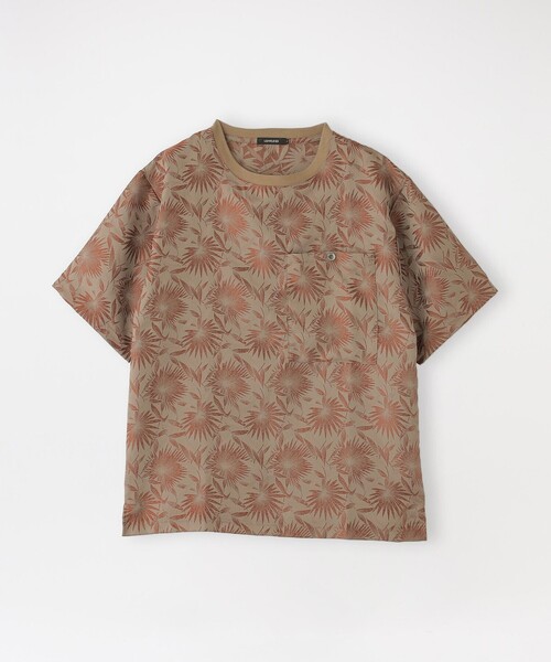 エキゾチックなフラワーモチーフをフクレジャガードで浮き出せたインパクトのあるショートスリーブトップス 【素材】 表面に柄が浮き上がるように織られたフクレジャガード素材を使用。 【シルエット/デザイン】 程よく肩を落としたゆるやかなシルエットです。 胸元にはビッグポケットを配しており、LOVELESSオリジナルのドット釦を使用することで利便性とオリジナル性を持たせました。 【スタイリング/その他】 同柄同素材のフクレフラワージャガードイージーパンツ(61R57131)と合わせたセットアップスタイルや、それぞれ単体での着用でコーディネートの幅が広がります。 総柄なので、無地のボトムスと合わせても、コーディネートが完成される一品です。