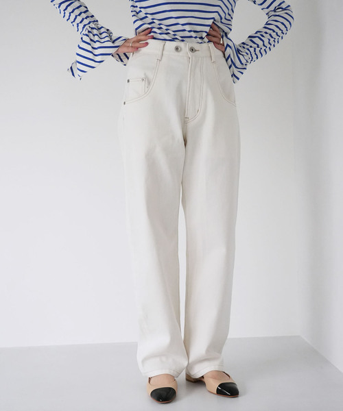 【2023SS】 SLOBE citron./スローブ シトロン NEW CONCEPT ”Fun Girl" フレンチトラッドを根底に 時代を先取りしながら自己流に楽しむスタイル。 それは、今を生きるトレンドコンシャスな彼女達のための 常に新しく、エネルギーに満ちたハッピーなワードローブ。 しっかりとした厚みのあるホワイトデニムを使用したカーブシルエットのデニム。 今シーズン欠かせない白ボトム。 脇になだらかに膨らむシルエットにこだわった1枚。 ウエストのボタンでサイズの調節ができ、 ハイウエストでも着用できるのもこだわりの1つ。 微配色で効かせたステッチワークが ウエスタン調の雰囲気も感じさせ程よいアクセントに。 大胆なポケットのカッティングで一癖つけたcitron.らしいデニムです。 ※こちらの商品はWEB、ルミネエスト新宿店・町田モディ店・ルミネ池袋店・ベイクルーズストア名古屋店(PARCO)・ららぽーとEXPO CITY店・天王寺店・ルクアイーレ大阪店・福岡PARCO店限定の商品です。 ※取り扱いについては、商品についている品質表示でご確認ください。 ※照明の関係により、実際よりも色味が違って見える場合があります。 またパソコン・スマートフォンなどの環境により、若干製品と画像のカラーが異なる場合もございます。 ※商品の色味は、商品アップ画像をご参照ください。 モデルサイズ:身長:162cm 着用サイズ:36 本体:洗濯機洗い(弱)