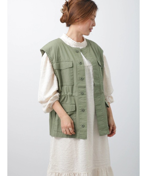 コーディネートにこなれた雰囲気を漂わせるミリタリーベスト。 丸みを帯びたネックラインで、優しい印象を与えてくれます。 フロントにあしらわれたポケットがスタイリングのポイントに◎ デイリーユースはもちろん、アクセント使いにもぴったりなアイテムです。 ※商品画像は、撮影環境やお客様のご利用のPC・スマートフォンのモニター環境などにより実物と色味に差異がある場合がございます。