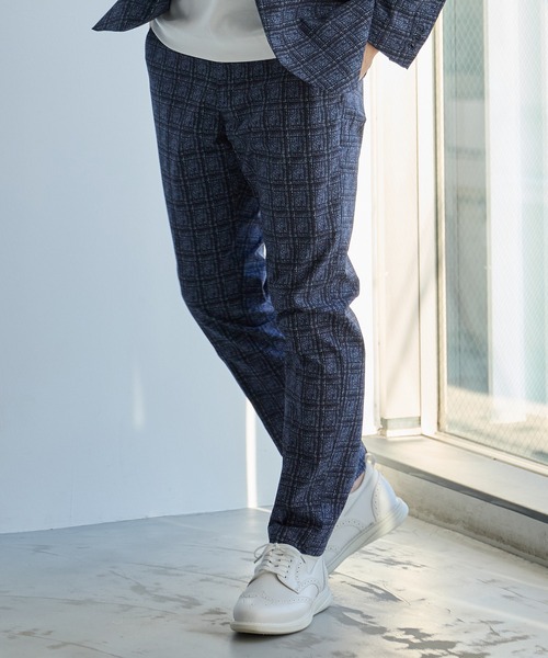 単品でもセットアップでもスタイリッシュな『快適チェック柄スラックス』 ジャケットに合わせたい快適パンツをお探しな大人の男性へ。 品格あるチェック柄を機能素材でで程よくドレスダウン! 普段使いでも活躍するキレイ目スラックスに仕上がりました! 【素材/デザイン】 ポリエステル素材のサッカー生地にトラディショナルなチェック柄を転写プリントしたスラックス。 サッカー生地の特徴である軽量さとイージーケア性が夏場に重宝します。 【スタイリング】 休日の大人カジュアルやビジネスシーンにも対応。 同素材のスラックスを合わせセットアップとしても着用出来ます。 同素材セットアップ対応スラックス(メーカー品番:M0831FJ 402) 【EFFORTLESS/エフォートレス】 「さりげない上品さ」をキーワードに大人の男性に向けた、素材感とサイジングにこだわったアイテムを展開するレーベル。 肩ひじを張らずに自分に合ったおしゃれを楽しめる、きれいめカジュアルアイテムを提案します。 【UNION STATION/ ユニオンステーション】 「ちょっとおしゃれをもっと簡単に」 素材とサイズ感にこだわった着心地の良いモノ。クローゼットに本当に必要なモノ。日常でhappyを感じさせてくれるモノ。 私たちの考えるファッションとは服を通して人の心を明るくしワクワクさせたり、ささやかな高揚感を与えられたりすること。 そんなファッションを提案します。 ※屋外での撮影画像は光の加減で、実際の商品より明るく見える場合が御座います。 商品の色味は生地アップ・スタジオ撮影の画像をご参考下さい。 ※画像の商品はサンプルとなりますので実際の商品と仕様、加工、サイズが若干異なる場合がございます。 ※生産の都合上、納期が変更になる場合がございます。発送日が前後する可能性がございますので予めご了承ください。 ※ご注文いただいた予約商品のお届け時期の確認は、注文履歴ページより行えます。