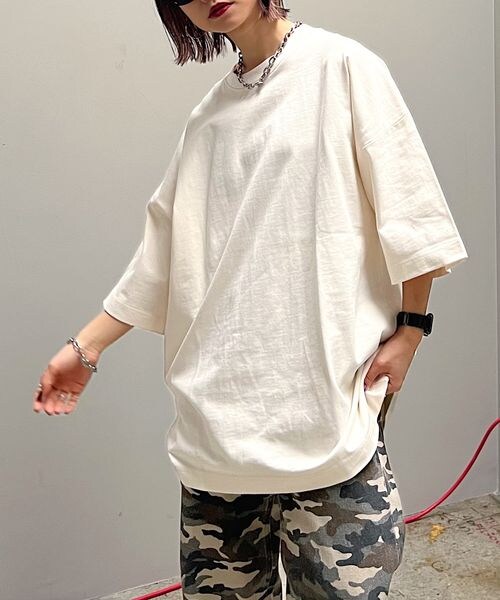 ーーー 程よい厚みのある生地感ですが、手触りは張り、柔らかさ、両方を兼ねそろえた生地を使用。 目の揃った目面で綺麗に見え、発色の良さもポイント。 ゆったりめのオーバーサイズでラフ感をだしつつ、バストとドロップショルダーから袖にかけて生まれる程よいボリューム感も魅力的。 オーバーサイズながらも野暮ったさを感じさせないシルエットに落とし込みました。 裾巾を少し裾窄まりにすることでスッキリとしたシルエットに仕上げました。 ーーー カラー展開も豊富でシンプルにデニム合わせやカラーボトム合わせでTシャツを主役としたスタイリングがおススメです。 〈注意事項〉 ・サンプルにて撮影をしておりますので、実際の商品とは素材や仕様・加工・サイズ等が若干異なる場合がございます。 ・モニター・環境等により実際の商品と色味が多少異なって表示される場合がございます。予めご了承をお願いいたします。 ・撮影環境により、光の当たり具合で色味が違って見える場合があります。あらかじめご了承下さい。