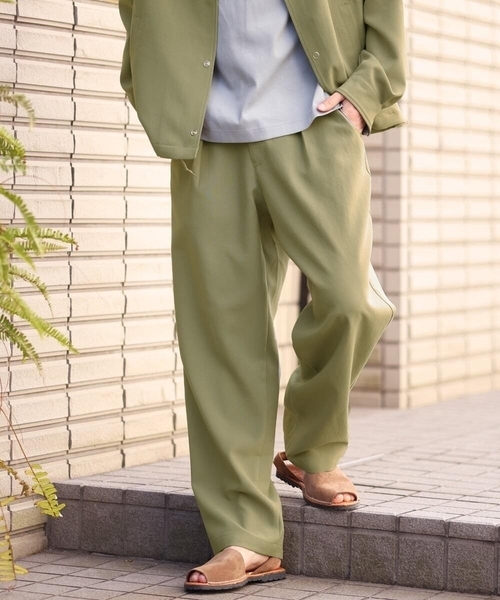 ◆【イージーケア/洗濯機で洗える/防シワ/毛玉になりにくい】 リライトシリーズ! 4つの多機能素材を使用したこだわりの詰まったセミルーズパンツ。◆ 【デザイン】 「リラックス」+「ライトな着心地」にこだわったリライトシリーズのスマート見えイージーパンツ。 ゆとりのあるセミワイドシルエットで大人のリラックススタイルにぴったりな1枚。 多機能素材のためお手入れも簡単なのでデイリーユースに着用が可能です。 ストレッチ素材でウエストイージー仕様のためベルトいらずで自転車通勤やテレワークにもオススメです。 【素材】 軽さのあるポリエステル100%の機能素材を使用。 特長として毛玉やシワになりにくく、サラッとしたドライタッチな肌触りの良さがあります。 イージーケア、気軽にご自宅で洗濯機洗いができます。 ナチュラルストレッチで動きやすい素材を使用しているため春から初夏にかけての季節、快適に過ごすことができます。 【スタイリング】 アウターには同素材のコーチジャケットを合わせる同色のセットアップコーディネートがまとまりがありトレンド感が満載です。 トップスはきれいめならシャツ、カジュアルならボーダー、ロゴ、フォトT合わせがオススメ。 無地のため、柄物トップスとの相性も良いです。 同素材ジャケット商品番号:KHJFS17089 ---------------- 透け感:なし 裏地:なし 伸縮性:ややあり 光沢感:ややあり 生地の厚さ:やや薄手 ---------------- ≪お気に入り登録機能の使い方≫ ■商品のお気に入り登録(ハートマークをクリック) 再入荷通知や値下げ等、お得なご案内を受けることができます。 ---------------- ※050/XL サイズはWEBおよび一部の店舗限定販売です。 ※お使いの液晶環境により、色味が多少異なる場合がございます。予めご了承ください。 ※サンプルにて撮影しておりますため、お届けの商品と仕様が若干異なる場合がございます。予めご了承ください。