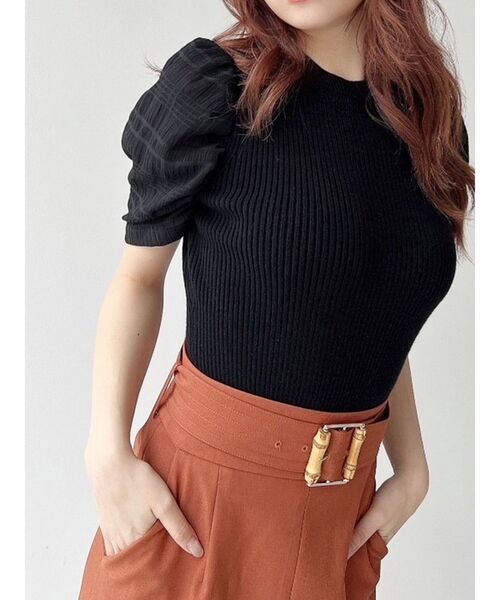 異素材ドッキングのニット ▽デザイン▽ 袖部分にシアー素材のチェック柄生地をドッキングし 抜け感とトレンド感のあるニットに仕上げました。 袖の形に拘り特徴的な付け方をし、ボリューム感を出したことで 女性らしさや可愛らしさをプラスできる1枚。 同色のシアーにしたのでチェック柄が主張しすぎず、 着やすくデザイン性のあるアイテムです。 ▽カラー▽ ベーシックな白・黒と シーズンムードの高まるラベンダーの3色展開。 ▽スタイリング▽ ボディにフィットしシルエットが綺麗に出る トップスなのでインスタイルがオススメ! パンツでもスカートでもマッチする1枚です。 ※着用画像はフラッシュの加減で実際の製品と色味等が異なる場合がございますので、生地のズームアップ画像をご確認ください。 ※ご利用の端末画面の設定により実際の商品と色味が異なる場合がございます。 【商品特徴】 透け感:なし 伸縮性:あり 生地の厚さ:普通 サイズ感:普通 裏地:なし ポケット:なし