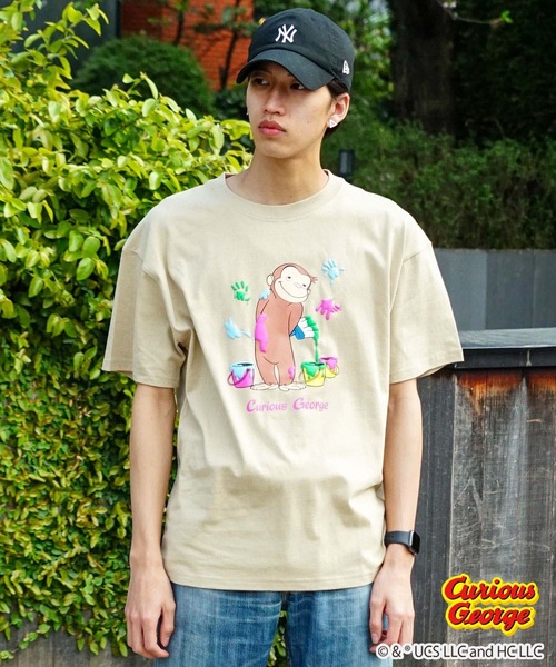 【OUTDOOR PRODUCTS/アウトドアプロダクツ】【 おさるのジョージ 】ニョッキ ハンドリー コラボ Tシャツ ドロップショルダー オーバーサイズ