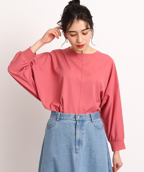 一枚でサマになるゆったりドルマントップス! 【デザイン】 ドルマンスリーブのボリュームのあるお袖が可愛いブラウス! 裾は、前後差を付ける事で、インスタイルでもアウトスタイルでもサマになるデザインです。 首元と袖口の異素材のリブデザインがポイントになっています! ゆったりシルエットなので、F(フリー)サイズ展開となっています。 【スタイリング】 アウトスタイルには、細身のパンツやナロースカートで、ゆるっとカジュアルな着こなしがおすすめ。 デニム合わせももちろん◎ ワイドパンツはふんわりスカートにはインスタイルで、大人っぽくすっきり着て頂くのがおすすめ♪ 幅広いスタイリングを楽しんで頂けます! 【素材】 サラッと軽い質感。 少し伸縮性のある布帛素材。 洗濯後にシワになりにくいので、お家でのお手入れが楽ちんなイージーケア機能付き! モデル情報:身長166cm B83 W63 H85 着用サイズ:00(FREE) 店舗へのお問い合わせ商品番号:741-86012 ●製品寸法: 00(FREE):着丈前64cm 着丈後69cm B143cm 袖丈36cm 肩幅66cm 備考: