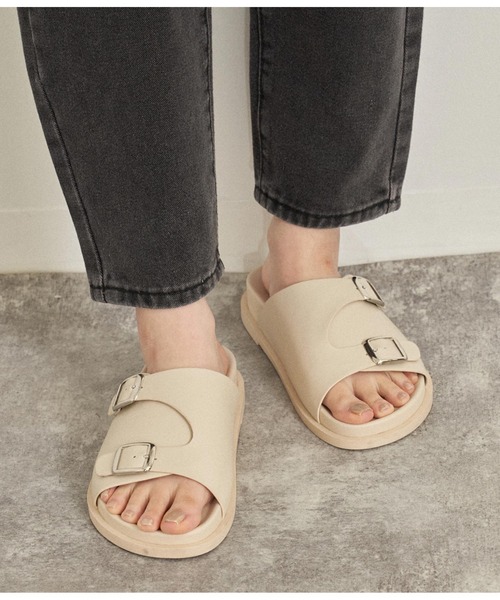 コーデのワンポイントアイテムになるダブルバックルサンダル。デニムパンツやスカート、ワンピースに合わせてタウンユースできます。とても軽い素材で、さっと脱ぎ履きできてストレスフリー。リラックスタイムにも最適です。※モデル着用画像は光の当たり具合で色味が違って見える場合がございます。※商品の色味の目安は、商品単体の画像をご参照ください。<サイズ>S(22.5cm~23cm)甲幅:17cm底幅:10.5cmM(23.5cm~24cm)甲幅:17cm底幅:11cmL(24.5cm~25cm)甲幅:17cm底幅:11cmソール:1.2cm【お買いものをお楽しみいただく為に!】▼商品のお気に入り登録完売カラーの再入荷通知や、ラスト1点の通知、セールの通知も受け取ることができます。▼ブランドのお気に入り登録新商品や再入荷など、いち早くブランドのお得な情報を受け取ることができます。