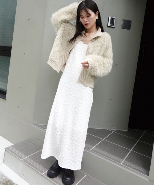 ジャガード生地を使用したキャミワンピース。シンプルになりすぎなくて、でも主張が強すぎるわけでもなく、コーデしやすい一枚。インナーにトップスを重ねても、インナーなしで一枚でも様になります。ややタイトなシルエットで女性らしさを引き立たせます。▽生地感透け感:あり 〇〇●〇〇 なし生地の厚さ:厚い 〇〇〇●〇 薄い裏地:あり伸縮性:あり◆商品のお気に入り登録【お気に入りに登録】を是非ご活用ください。 再入荷の通知や、ラスト1点の通知、セールの通知がいち早く届きます。◆ブランドのお気に入り登録新商品や再入荷など、いち早くブランドのお得情報が届きます。◆ATTENTION◆※取り扱いについては、商品についている品質表示でご確認ください。※出来る限り忠実に再現するよう務めておりますが、 ディスプレイ画面などの環境上、店頭・屋外での撮影画像は、光の当たり具合で色味が違って見える場合が あります。ご了承下さい。※こちらの商品は水や雨に濡れたり、汗による湿気、乾燥状態での摩擦により、薄い色の衣服などに 色移りする可能性がございます。予めご了承いただき、ご使用の際にはご注意くださいますようお願い致します。※平置きでの実寸のため若干の誤差が生じる場合がございます。※生産時期により若干の色ブレやサイズの変動が生じる場合がございます。※また製品加工上、お手元に届く際に匂いが生じる場合がありますが、 ご使用を続けていく事により匂いは軽減されます。※輸送時による、多少の汚れ・シワがある場合がございます。