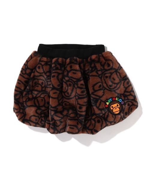 ポリエステル素材を使用したMILO総柄のバルーンスカート。左裾にMILOのワッペンを叩きつけ、ウエストはリブ、裏地仕様。1色5サイズ展開。