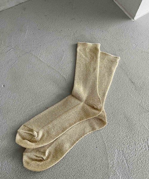 ーーーコーディネートのポイントに◎キラキララメソックスーーー【デザインと特徴】チクチクしないラメ素材を使用しているので、履きやすいラメソックス。履き口を少しクシュっとさせたり、サンダルやミュールと合わせて着るのがコーディネートのアクセントに◎ギフトにもおすすめです。※こちらの商品は、衛生上の観点から返品・交換を承る事ができません。---------------------------------------------------------《インフォメーション》◆商品のお気に入り登録完売していても再入荷時に再入荷通知を受け取ることができますので、是非ご登録ください♪◆ブランドのお気に入り登録新商品や再入荷などの情報を受け取ることができますので、是非ご登録ください♪公式Instagram >>> 【@apartbylowrys 】おすすめアイテムや新作情報、" ショップニュース "を更新中! ぜひフォローしてみてくださいね^^