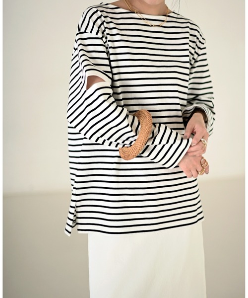 ◆アイテム詳細◆大人気だったボーダースリットロンTEEが再登場!!ワードローブの定番、ボーダーロンTEEはS/Sのマストアイテムです。メンズライクなオーバーシルエットのBODYに、片腕の袖にスリットをポイントとしたディテールがシンプルになりがちなTOPSのアクセントに!程良い抜け感を演出してくれてモードな大人カジュアルに。日常使いしやすい適度な厚みと、しなやかさを兼ね備えたコットン素材。肌触りよく通気性もよいので、シーズンレスで長い期間着用が可能となっております。幅広いボトムスと相性抜群◎!【COLOR】ホワイト×ブルー ホワイト×ブラックオフ×オレンジオフ×グリーン-INFORMATION- ◆商品のお気に入り登録完売していても再入荷時に再入荷通知を受け取ることができますので、是非ご登録ください。◆ブランドのお気に入り登録新商品や再入荷などの情報を受け取ることができますので、是非ご登録ください。 -BRAND- Marient(マリエント) 女性らしく着こなせるアイテムを、Marient(マリエント)は商品をバイヤー自ら企画/セレクトし販売から商品の説明、アドバイスまで大人カジュアルスタイルをご提案します☆