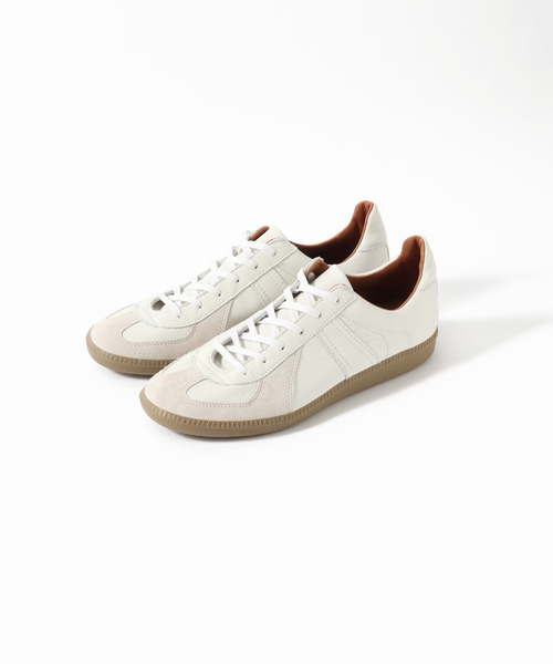 メーカー品番:1700L 1980年代にかけてドイツ軍でトレーニングシューズとして採用されていたスニーカーの通称、ジャーマントレーナー。 つま先保護で付けられたスエードが今やデザインとして確立され、メゾン系もデザインソースにするほどのキングオブミリタリースニーカーです。厚みのあるソールはミリタリーアイテムならではの機能性と履き心地を感じさせます。 【REPRODUCTION OF FOUND / リプロダクション オブ ファウンド】 見つけ出すという意味の“FOUND”、再現するという意味の“REPRODUCTION”を組み合わせて2016年SSシーズンから始まった「REPRODUCTION OF FOUND」。 世界各地の軍用トレーニングシューズをベースとしたスニーカーを展開する新鋭ブランドで、生産を担当するのは、1950~70年代にかけて実際に軍用トレーニングシューズを手がけていたというスロバキアのファクトリー。 また、ヴィンテージに精通した日本人がプロデュースしており、企業のロゴや装飾を一切省いたミリタリーらしい佇まいが特徴です。 ベースとなるそれぞれの国ごとにデザインが異なり、国柄が反映されているのも魅力となっています。