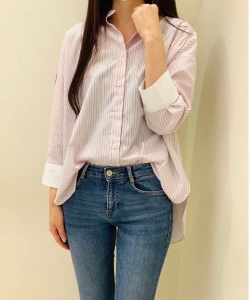 ◇LENZING(TM)ECOVERO(TM)◇オーストリアの繊維メーカーレンチング社が開発した、サステナブルなレーヨン素材を使用したシャツ。ゆったりとしたオーバーサイズデザインで着こなし自由自在◎。ピンク生地×ネイビーストライプの上品なクレリックスタンド衿。【BRICK HOUSE by Tokyo Shirts / ブリックハウス バイ トウキョウシャツ】業界トップ水準を誇るノーアイロンの形態安定加工は自宅で洗濯可能でお手入れ簡単!高度な縫製技術を用いた高付加価値シャツでありながら選ぶことを気軽に楽しめます。ベーシックから多様なデザインまで幅広いバリエーションで豊富なサイズ展開で、ディテールの隅々にまで織り込んで一枚一枚丁寧に仕立てられたシャツです。