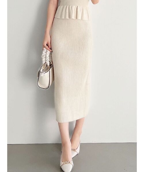 ベーシックで着回し力抜群のニットタイトスカートが今年も登場 ▽デザイン▽ 程よく身体にフィットするタイトなシルエットながら、 程よい厚さでラインを拾いすぎず安心して着用頂けます。 ウエストはゴム使用なので着脱も楽チン! 伸縮性とバックスリットでストレスフリーに履いていただけます。 ▽カラー▽ 白・黒・ピンクの3色展開。 ▽スタイリング▽ シーズンレスに万能に使える1枚。 ペプラムトップスとのセットアップ着用がオススメ◎ 【セットアップアイテムはコチラ】 152322631901:ペプラムリボンニットトップス ※着用画像はフラッシュの加減で実際の製品と色味等が異なる場合がございますので、生地のズームアップ画像をご確認ください。 ※ご利用の端末画面の設定により実際の商品と色味が異なる場合がございます。 【商品特徴】 透け感:あり / ややあり / なし 伸縮性:あり / ややあり / なし 生地の厚さ:薄手 / 普通 /厚手 サイズ感:細身 / 普通 / ゆったり 裏地:なし / あり / 裏起毛 ポケット:あり(前/横/後/内) /なし ファスナー:あり(横/後) /なし