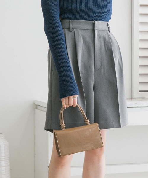 【こなれ感たっぷりな着こなしが叶うショートパンツ 】 引き続きトレンドのショートパンツを大人の方でも挑戦しやすいよう、ダブルタック仕様に致しました。ハイウエストで穿いていただけるのでスタイルアップ効果も抜群。程良い落ち感のある素材で年中穿いていただけます。 POINT ・ダブルタック仕様 ・トレンドのショートパンツ ・年中穿ける素材&デザイン COORDINATE シンプルなのでデザイン性のあるトップスと相性抜群。丈長めのシャツやブラウスと合わせるとバランス良く仕上がります。 ※商品画像は、光の当たり具合やパソコンなどの閲覧環境により、実際の色味と異なって見える場合がございます。予めご了承ください。 ※商品の色味の目安は、商品単体の画像をご参照ください。 ▼お気に入り登録のおすすめ▼ お気に入り登録商品は、マイページにて現在の価格情報や在庫状況の確認が可能です。 お買い物リストの管理に是非ご利用下さい。 ----------------------------- 透け感:なし 伸縮性:ややあり 裏地:なし 光沢:ややあり ポケット:あり -----------------------------