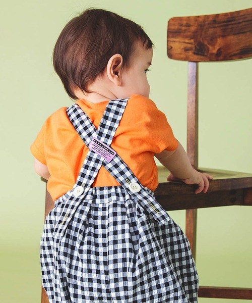 Tシャツとギンガムチェックのサロペットとのセットアイテム。それぞれ別々にお使いいただくこともできます。サロペットのサスペンダーは取り外しできるので、ショートパンツとしても使えますよ☆ TシャツはBREEZEらしいロゴTシャツ。同じギンガムチェックの生地を使った女の子用のTシャツ×ブルマセットアップもご用意しているのでシミラールックもお楽しみいただけます♪【 BREEZE -ブリーズ- 】WEAR A HAPPY SMILEこだわりと遊び心のつまった、着ると「笑顔」のWEAR、「着たい」がいっぱいのSHOPそんなHAPPY SMILEに出会える場所がBREEZE